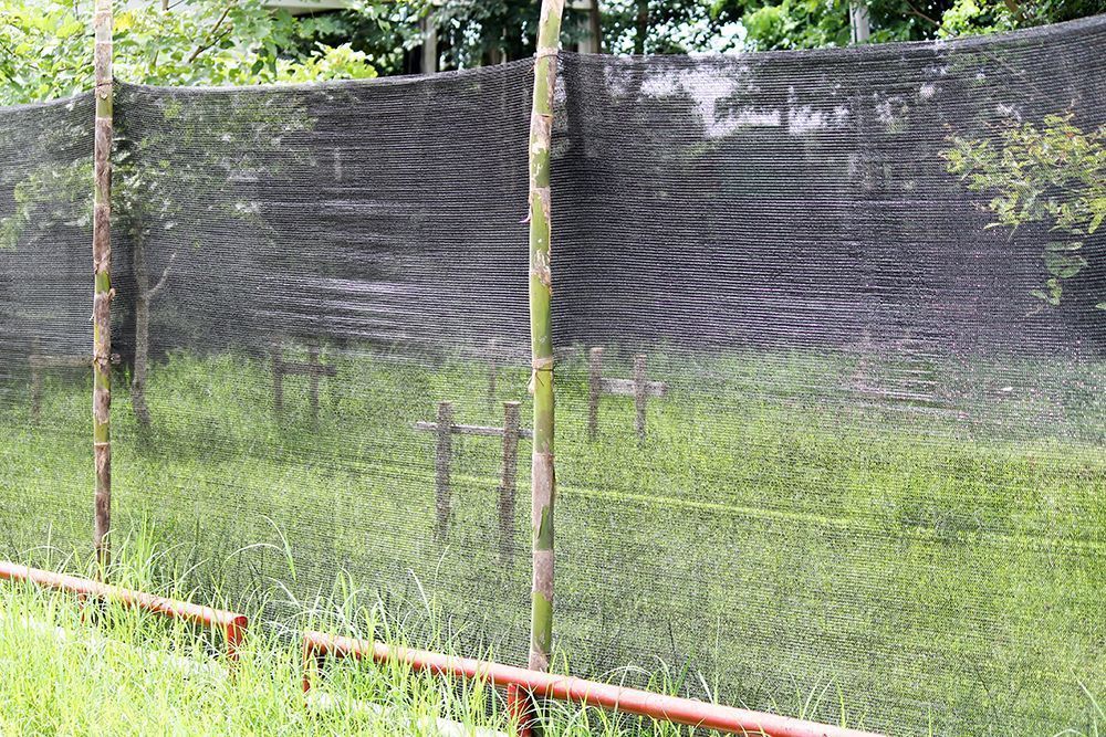 المواد الخام لشباك كسر الريح المستخدمة في مجال النسيج الزراعي والحيواني هي البولي إيثيلين 100 ٪ .